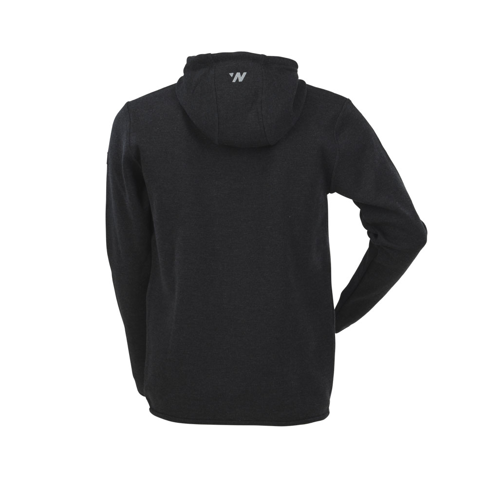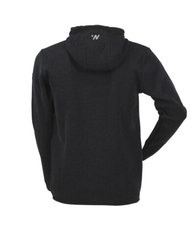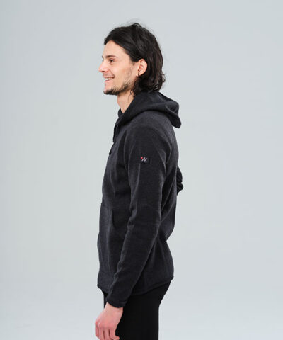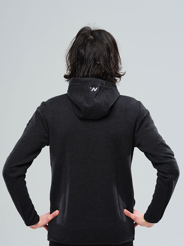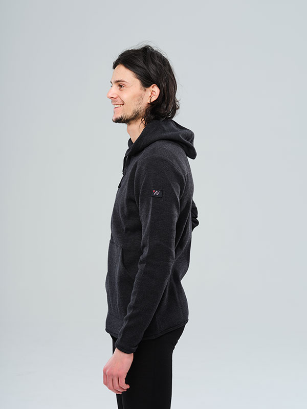 Stickad, funktionell hoodtröja av 100% extra fin merinoull, i en snygg mörkgråmelerad färg
